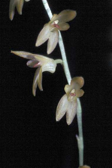 Found in Hidalgo, Puebla, Veracruz, Oaxaca and Chiapas states of Mexico, Guatemala, El Salvador, Honduras and Nicaragua in cloud forests on steep slopes as a small to medium sized, hot to cool growing epiphyte that occurs at elevations of 150 to 2000 meters with a terete ramicaul enveloped completely by tubular, scarious sheaths carrying a single, apical, ovate, retuse, attenuate into the short petiolate base leaf that blooms on 1 to 2, apical, erect to pendulous, 4 to 8" [10 to 20 cm] long, racemose, several to many [12 to 20] flowered inflorescence with simultaneously opening flowers all facing the same direction occuring in the summer and winter.