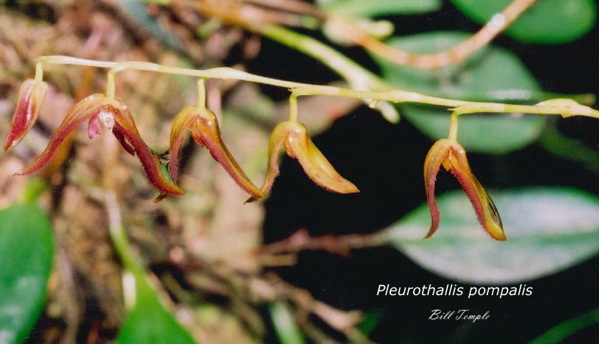 References W3 Tropicos, Kew Monocot list , IPNI ; Icones Pleurothallidinarum Systematics of Pleurothallis Vol 3 Luer 1986 drawing fide; Icones Planetarum Tropicarum Plate 1382 Atwood drawing fide; Icones Pleurothallidinarum Vol XVII Luer 1998 drawing fide; Manual de Plantas de Costa Rica Vol 3 Hammel, Grayum, Herrera and Zamora 2003; Icones Pleurothallidinarum Vol XXVI Luer 2004 as Uncifera pompalis; Orchids of Costa Rica Vol 5 Morales 2009 photo fide;