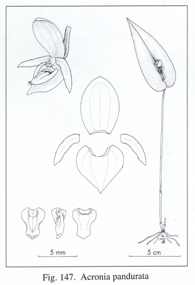 References W3 Tropicos, Kew Monocot list , IPNI ; *Icones Pleurothallidinarum Vol XXVII Luer 2005 as Acronia pandurata drawing fide;
