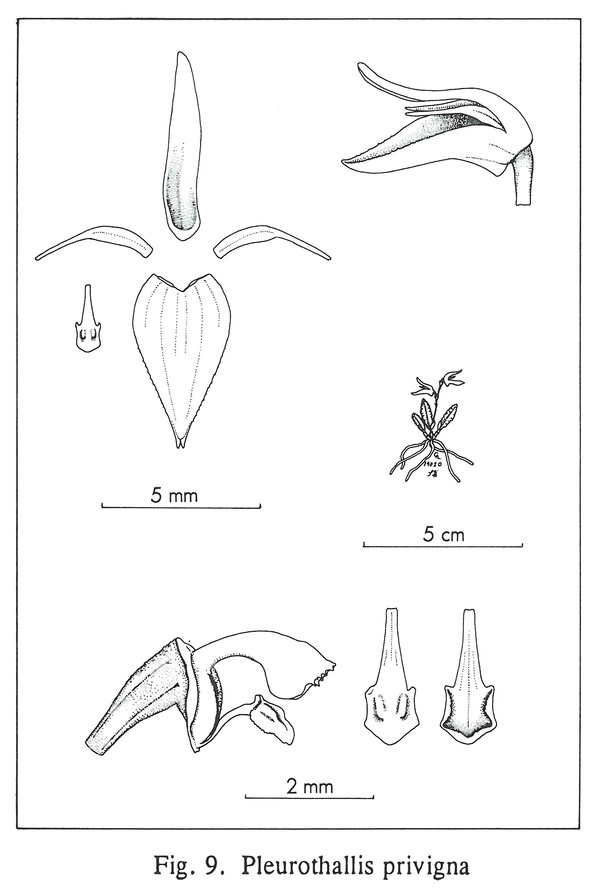 Pleurothallis privigna Luer 1999 SUBGENUS Antilla Luer 2000 Drawing by © Carl Luer and The Swiss Orchid Foundation at the Jany Renz Herbaria Website