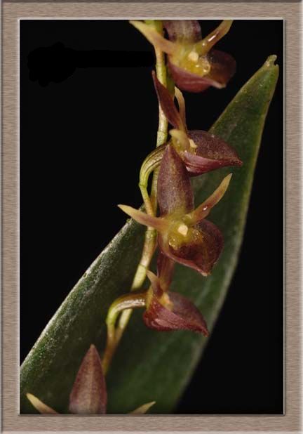 CAUTION !!! The 2 species in the photographs above appear to match Luer's drawing of the flower but differs in having a less orbicular leaf, single, shorter inflorescence and fewer, larger flowers, so use with caution. The drawing is correct.