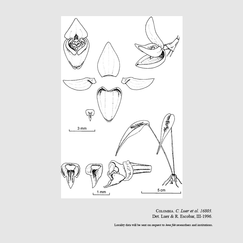 References W3 Tropicos, Kew Monocot list , IPNI ; *Orquideología 10: 79. Luer & Escobar1996 drawing fide; Icones Pleurothallidinarum Vol XVIII Luer 1999 Drawing fide