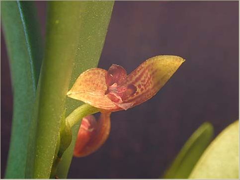 Found in Michoacan, Oaxaca and Chiapas states of Mexico at elevations of 1800 to 2400 meters as a miniature to just small cool to cold growing epiphyte with slender, erect ramicauls enveloped by a tubular sheath from below the middle and 2 to 3 others above the base and carrying a single, apical, erect, coriaceous, narrowly elliptical-obovate, subacute to obtuse, narrowly cuneate below into the petiolate base leaf that blooms in the summer and fall on an erect, subcongested, distichous, .4" [1 cm] long, successively several flowered inflorescence arising through a spathe from near the apex of the ramicaul, and has a tubular floral bract.