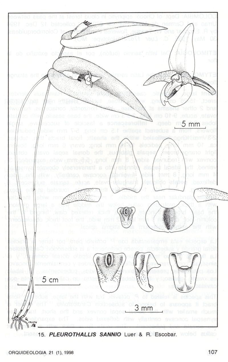 References W3 Tropicos, Kew Monocot list, IPNI ; *Orquideología Vol 21 #1 Luer & Escobar 1998 drawing fide; Icones Pleurothallidinarum Vol XXVII Luer 2005 drawing fide as Acronia sannio