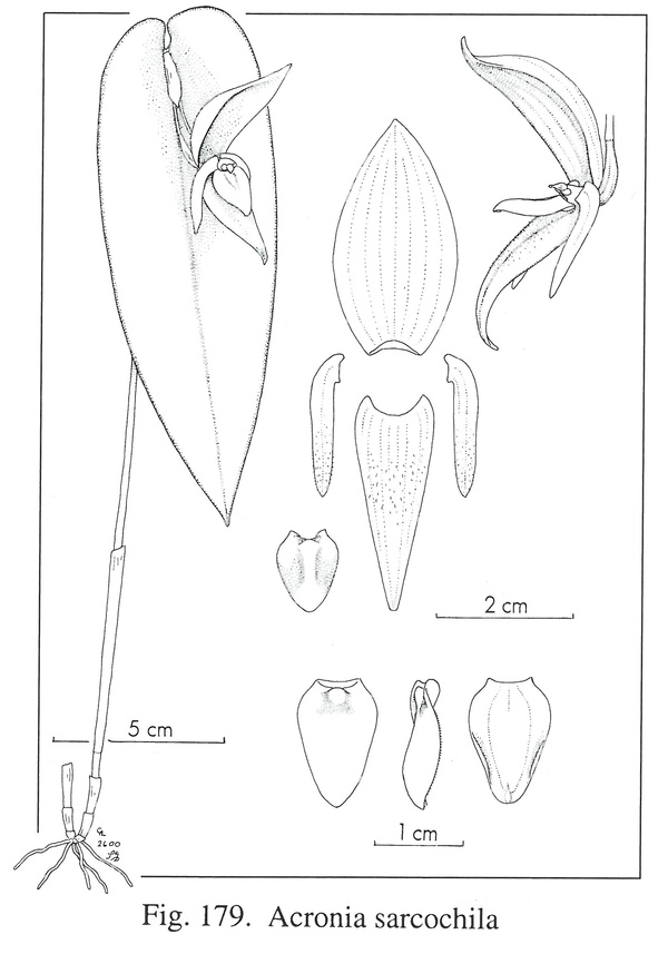 References W3 Tropicos, Kew Monocot list , IPNI ; Icones Pleurothallidinarum Vol XXVII Luer 2005 as Acronia sarcochila drawing fide;