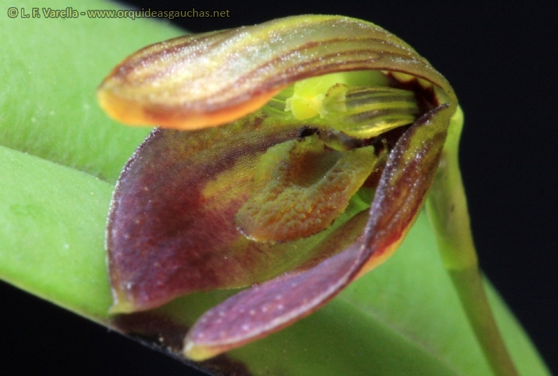 Found in Colombia, Bolivia, Peru and southeastern Brazil as a small sized, hot to cool growing epiphyte at elevations of 1 to 2000 meters with an erect, ramicaul enveloped basally by a few tubular sheaths and carrying a single, apical, erect, elliptic-lanceolate, obtuse, rigid, green leaf that blooms in the fall to winter on a racemose, 6" [15 cm] long, several flowered inflorescence arising from the base of the leaf with all the flowers held in one direction.
