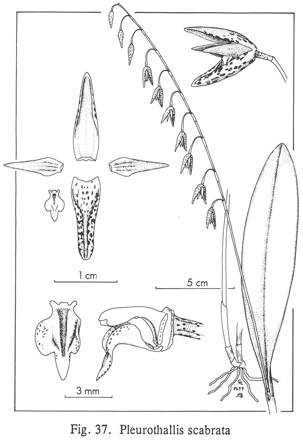 Pleurothallis scabrata Lindl. 1859 SUBGENUS Specklinia SECTION Effusae Lindl. 1842 Drawing by © Carl Luer and The Swiss Orchid Foundation at the Jany Renz Herbaria Website