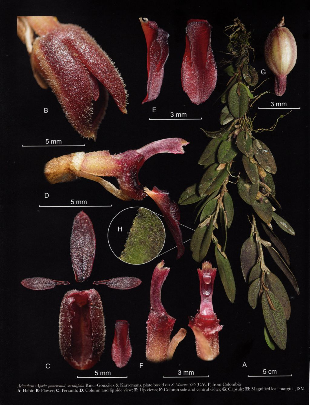 References W3 Tropicos, Kew Monocot list , IPNI ; * Nomenclatural notes in the Pleurothallidinae (Orchidaceae): Apoda-prorepentia 2015 ; Pleurothallids Neotropical Jewels Vol 1 Karremans & Viera 2020 as Acianthera serratifolia photo fide