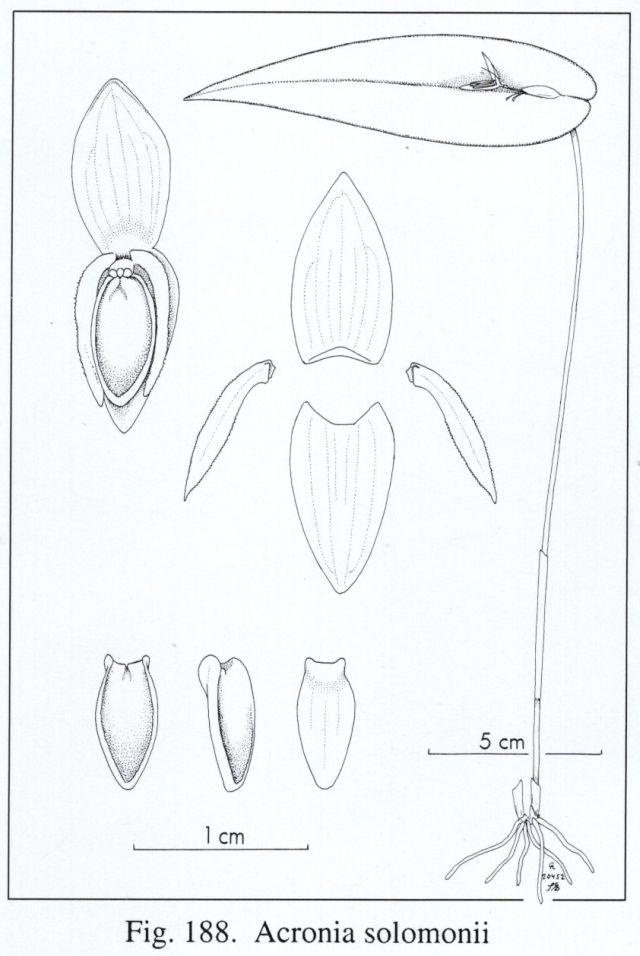 References W3 Tropicos, Kew Monocot list , IPNI ; *Icones Pleurothallidinarum Vol XXVII Luer 2005 as Acronia solomonii drawing fide;