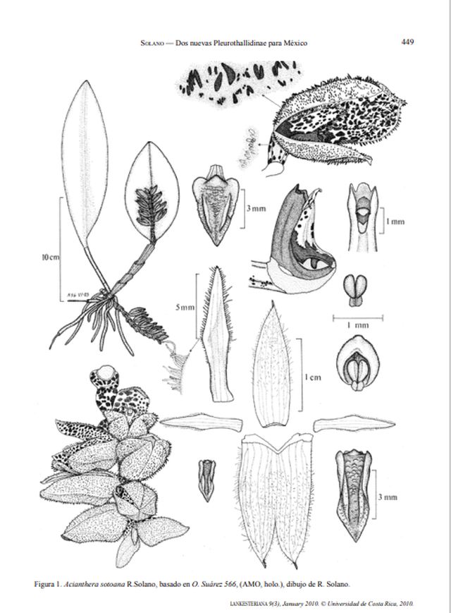 References W3 Tropicos, Kew Monocot list , IPNI ; Lankesteriana 9: 447 Solano 2010 as Acianthera sotoana drawing fide