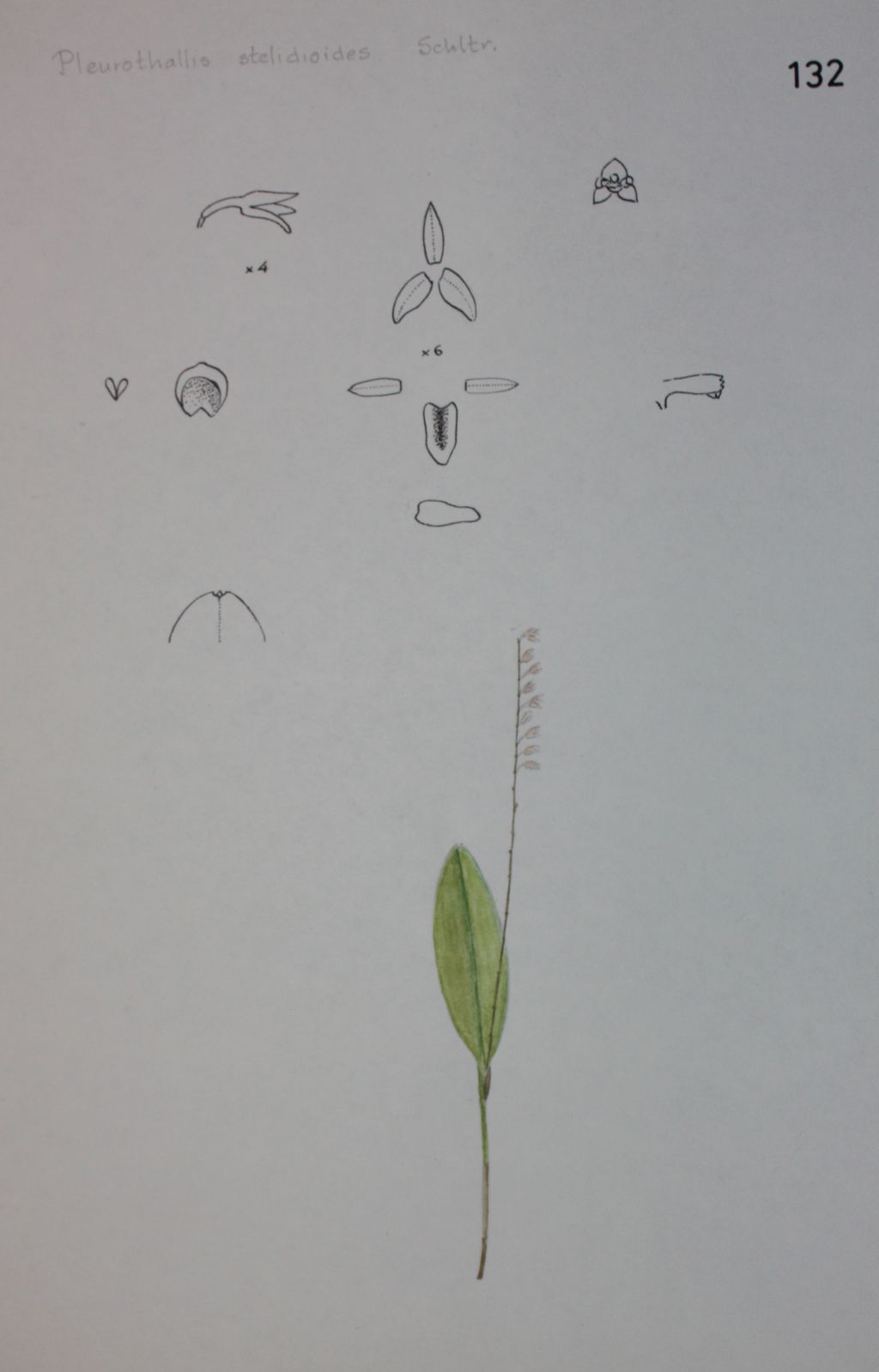 References W3 Tropicos, Kew Monocot list , IPNI ; *Bonplandia Rchb.f 1855; Repertorium Specierum Novarum Regni Vegetabilis 1920 as P stelidioides; Icones Pleurothallidianrum Vol 3 Luer 1986; Icones Pleurothallidinarum Vol XVIII Systematics of Pleurothallis subsection Antenniferae, Longiracemosae, Macrophyllae-Racemosae and Subgenera Pseudsostelis and Acuminata Luer 1999 drawing fide;