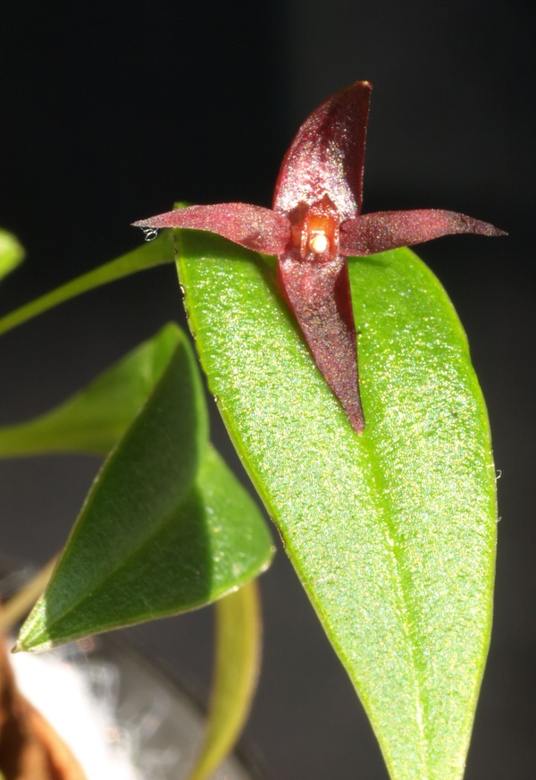 Found in northern Venezuela at elevations around 1370 meters as a miniature sized, warm to cool growing epiphyte with slender, erect ramicauls enveloped by 2 thin tubular shaeths below the middle and another at the base and carrying a single, apical, horizontal, coriaceous, narrowly ovate, acute, cordate below into the sessile base leaf that blooms in the spring on a short successively single flowered inflorescence arising through a reclining spathe at the base of the leaf and carrying a non-resupinate flower.