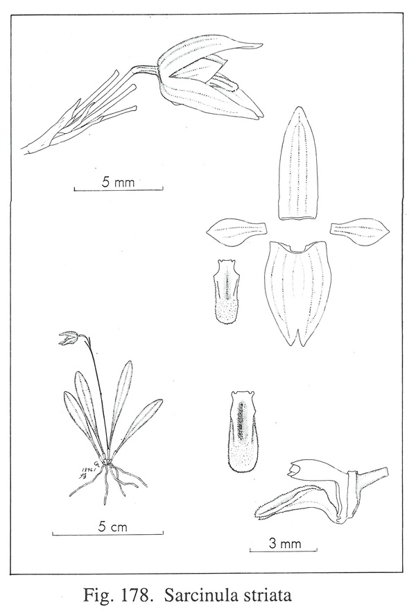References W3 Tropicos, Kew Monocot list , IPNI ; Icones Pleurothallidinarum Vol XXVI Luer 2004 as Specklinia striata; Icones Pleurothallidinarum Vol XXVIII Luer 2006 as Sarcinula striata drawing fide; Pleurothallids Neotropical Jewels Vol 1 Karremans & Viera 2020 as Specklinia striata photo fide