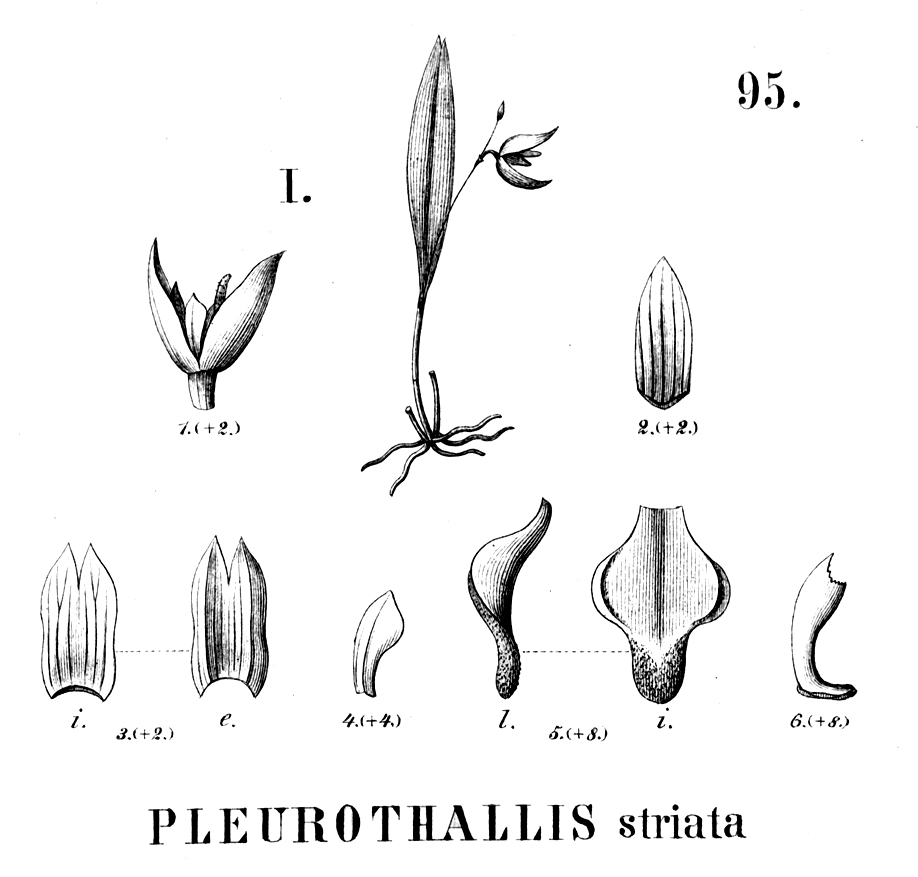 Pleurothallis striata H.Focke 1851 SUBGENUS Specklinia SECTION Hymenodanthae SUBSECTION Apodae-Caespitosae [Lindl.]Luer 1986 Drawing by Carl Luer