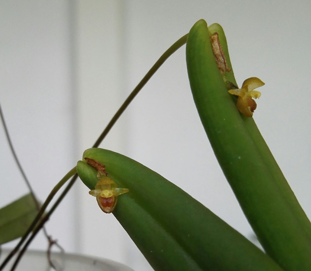 Found in western Venezuela and eastern Colombia in dense forests at elevations around 1300 to 2650 meters as a mini-miniature to small sized, warm to cold growing epiphyte with a slender, erect ramicaul with a close, tubular sheath below the middle and 2 others at the base and carrying a single, apical, erect, coriaceous, narrowly linear with revolute sides, acute, sessile and shortly cordate below leaf that blooms in the winter, spring and summer on a fascile of successive single flowered inflorescence arising through a spathe.
