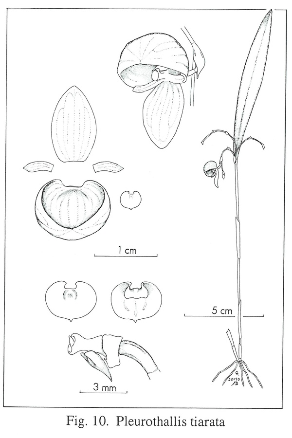 Pleurothallis tiarata Luer & Hirtz 2004 SUBGENUS Pleurothallis SECTION Pleurothallis SUBSECTION Macrophyllae-Racemosae [Lindl] Luer 1986 Photo by © Gilberto Merino and The Blue Nanta Website