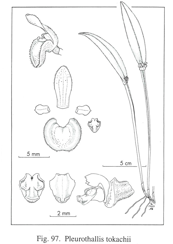 References W3 Tropicos, Kew Monocot list , IPNI ; Icones Pleurothallidinarum Vol XXVI Luer 2004 drawing fide; Icones Pleurothallidinarum Vol XXVI Luer 2004 as Acianthera tokachii; Pleurothallids Neotropical Jewels Vol 1 Karremans & Viera 2020 as Acianthera tokachi photo fide; Anales Jard. Bot. Madrid 75(1)e069: 13 2018 A taxonomic synopsis of Acianthera (Orchidaceae: Pleurothallidinae) in Peru, including two new species Damian, Chiron and Mitidieri 2018 as Acianthera tokachii photo fide