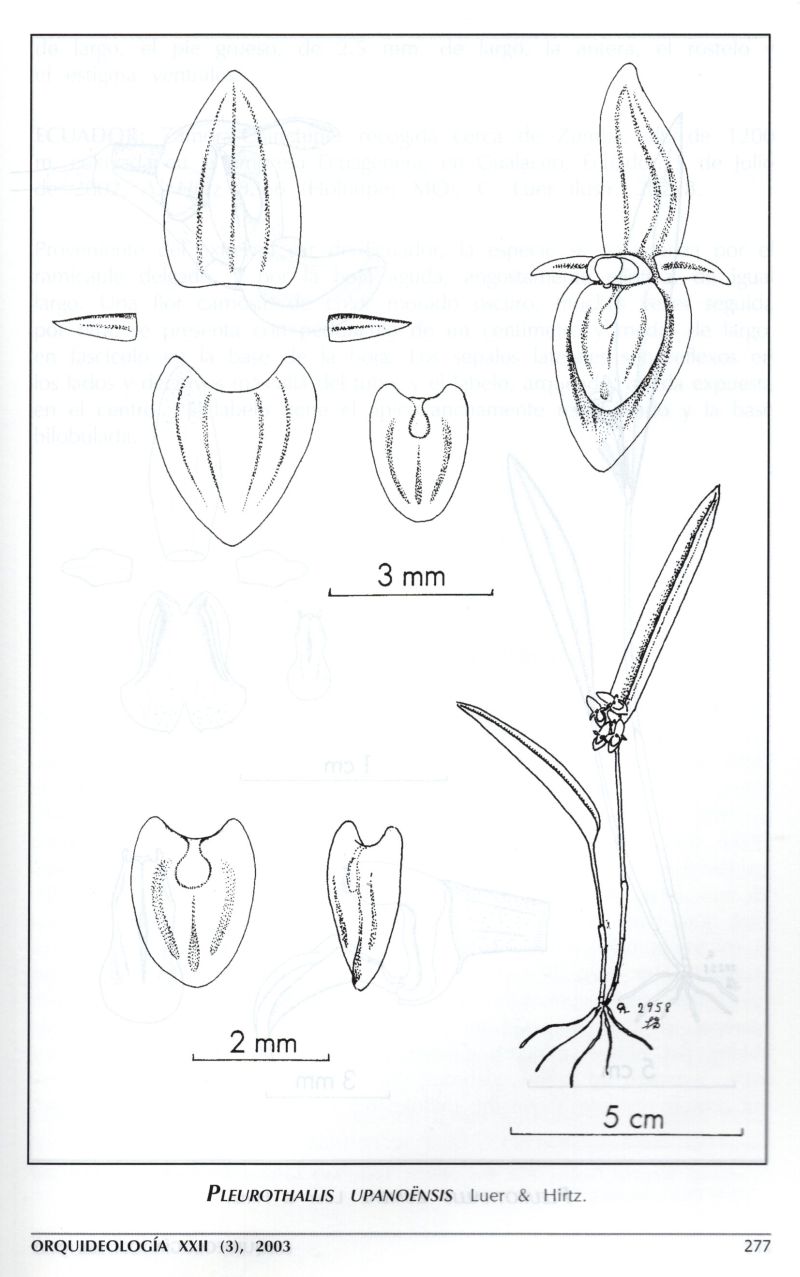 References W3 Tropicos, Kew Monocot list , IPNI ; *Orquideologia Vol 22 #3 2003 drawing fide; Icones Pleurothallidinarum Vol XXVII Luer 2005 as Acronia upanoensis drawing fide;