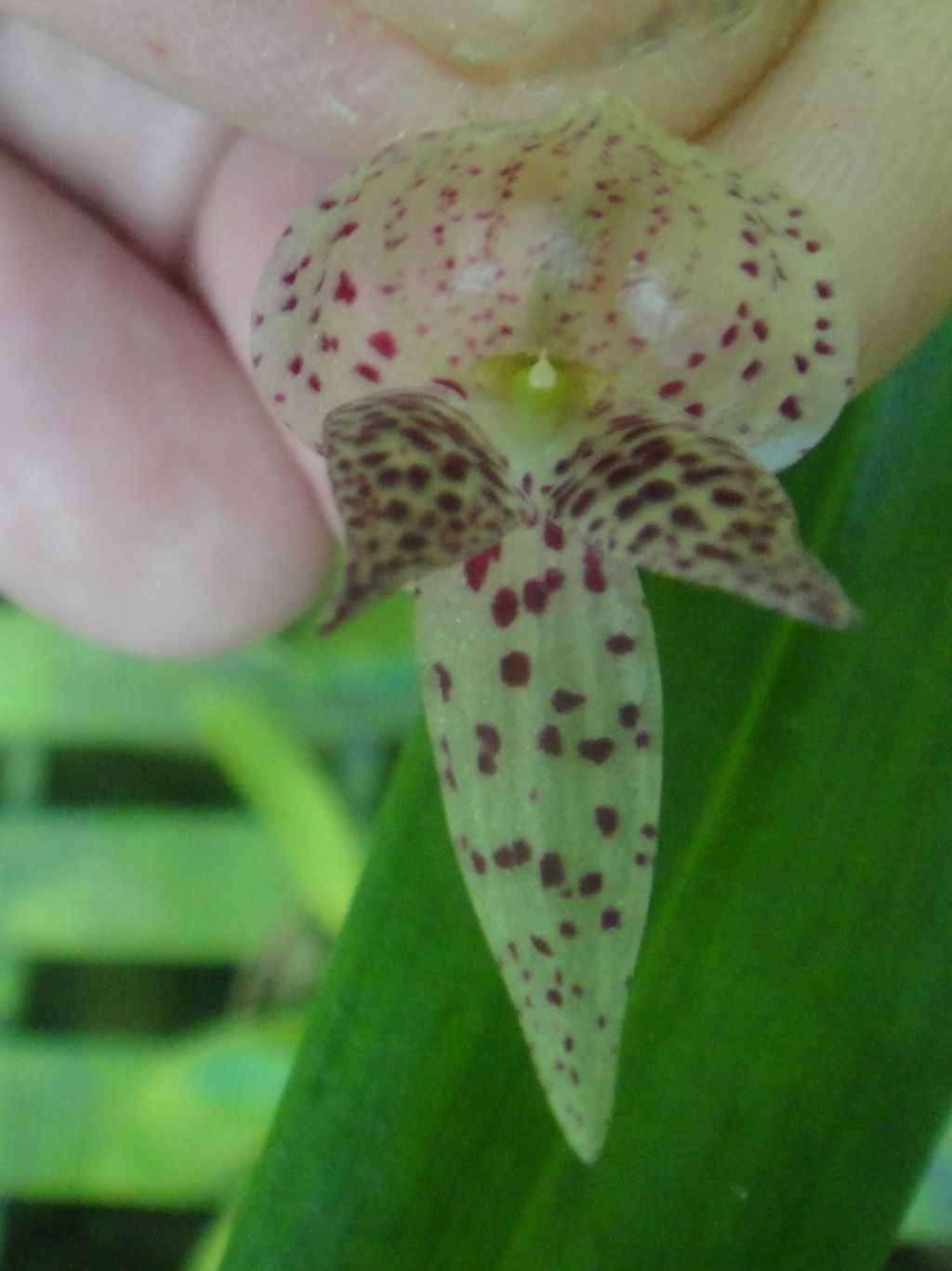 Distinguished by the single, pendent flower with a pair of calli on the disc of the lip and another on the basal lobes that surround the column and are clearly visible in the photo.