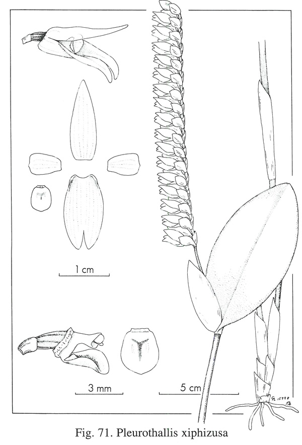Pleurothallis xiphizusa (Rchb.f. & Warsz.) Rchb.f. 1861 SUBGENUS Crocodeilanthe [Rchb.f & Warsc.]Luer 1986 Drawing by © Carl Luer and The Swiss Orchid Foundation at the Jany Renz Herbaria Website