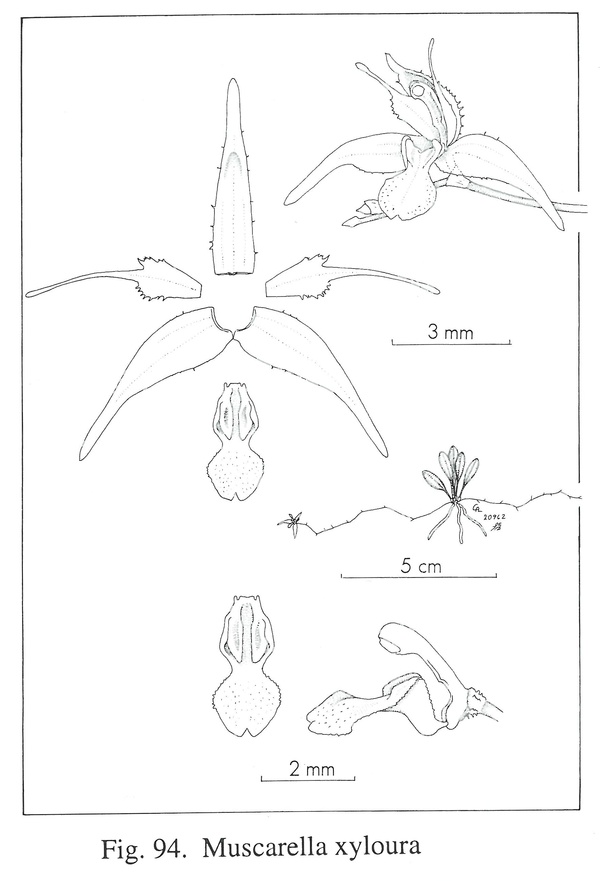 References W3 Tropicos, Kew Monocot list , IPNI ; Icones Pleurothallidinarum Vol XXVIII Luer 2006 as Muscarella xyloura drawing fide