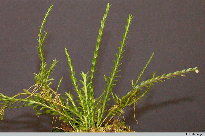 Found in New Guinea in lowland and lower montane forests at elevations around 5 to 900 meters as a miniature to small sized, hot to warm growing epiphyte with unbranched, thinly terete, densely leafy stems enveloped completely by persistent, tightly clasping leaf sheaths and carrying several, erect-patent, narrowly lanmceolate or oblong-lanceolate, apically bristly apiculate leaves that blooms in the summer and fall on a terminal, pendant, distichous, rather lax, to .6" [1.5 cm] long, 7 to 20 flowered inflorecence