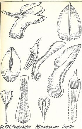 Podochilus minahassae Schltr. 1911 Type drawing by © Schlechter and The Swiss Orchid Foundation at the Jany Renz Herbaria Website