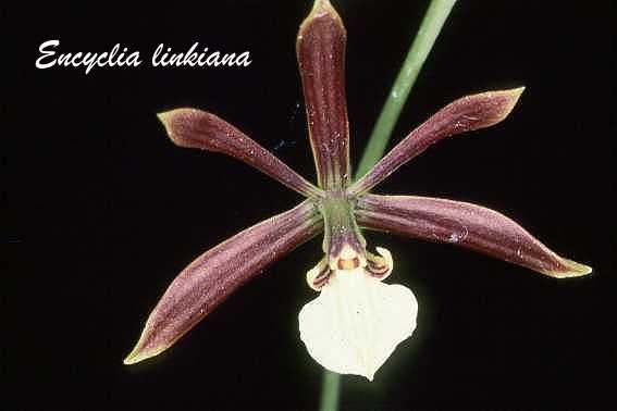 References W3 Tropicos, Kew Monocot list , IPNI ; Bonplandia Rchb.f 1856 as Epidendrum linkianum; The Genus Epidendrum Ames 1936 as Epidendrum linkianum; The Orchids of Panama L.O. Williams & P Allen 1946 as Epidendrum crassilabium; ORQUIDEA (Méx.) 9(2): 1984 as Encyclia linkiana drawing/photo fide; Flora Novo-Galaciana Vol 16 McVaugh 1985 as Encyclia linkiana; Orquideas del Estado de Morelos ORQUÍDEA (MÉX.) VOLUMEN 16 NÚMERO ÚNICO enero 2002 as Prosthechea linkiana drawing/photo fide; *The Cattleya and Their Relatives Vol 7 The Debateable Epidendrum Withner & Harding 2004 photo fide; Icones Orchidacearum fascile 10 plate 1073 Hagsater & Soto 2008 as Prosthechea squalida drawing fide; Mille et Une Mini Orchideees Roguenant 2009 as Prosthechea linkiana photo fide;