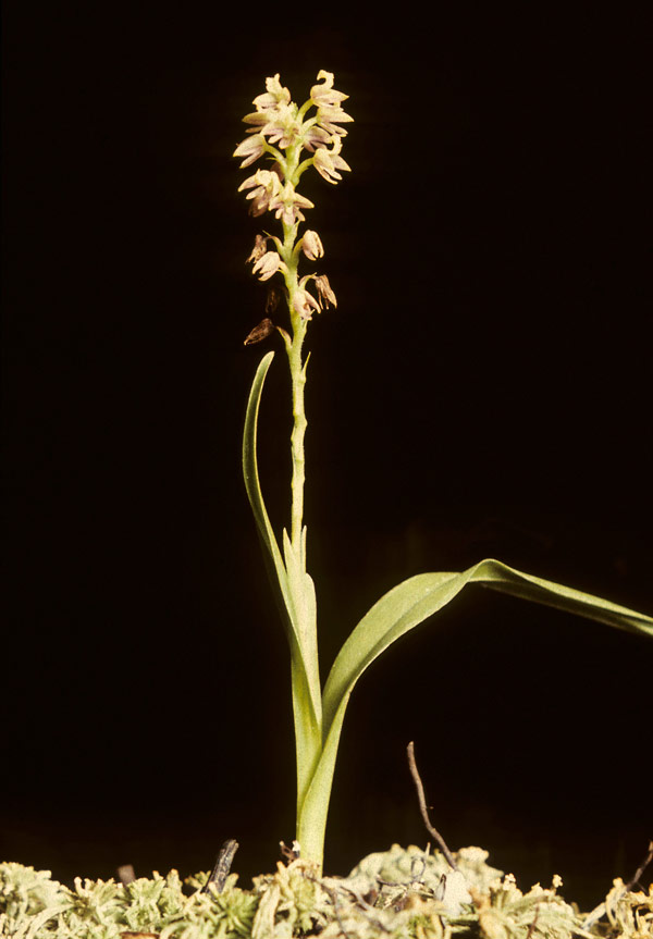 Found in mid central to northern Madagascar in lichen rich montane forests at elevations of 1000 to 2000 meters as a mini-miniature sized, cool growing epiphyte with ovoid pseudobulbs carrying 2 to 4, linear leaves that blooms in the summer on an erect, 4 to 15 flowered inflorescence