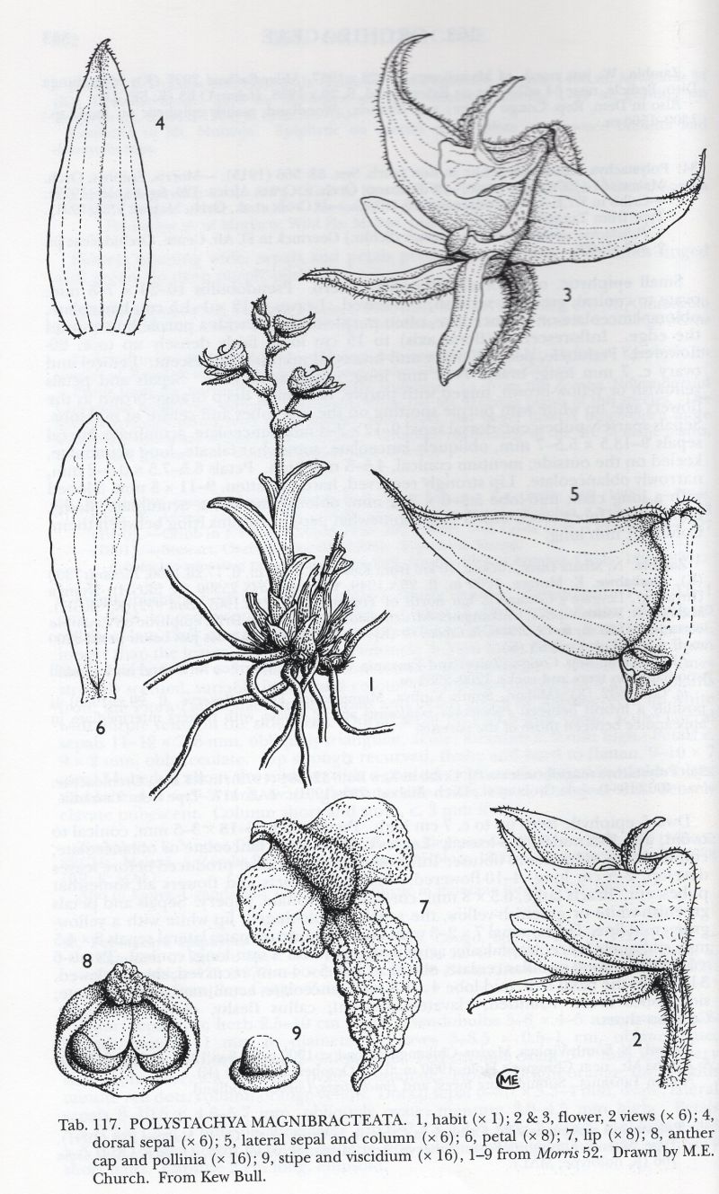 Polystachya magnibracteata P.J.Cribb 1978 SECTION Affines Drawing by © M E Church
