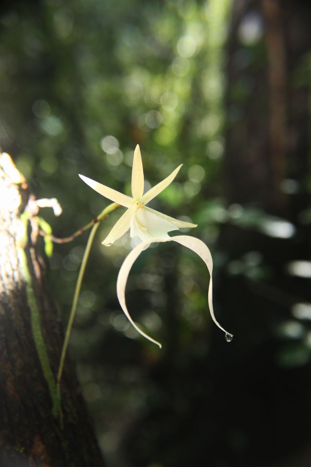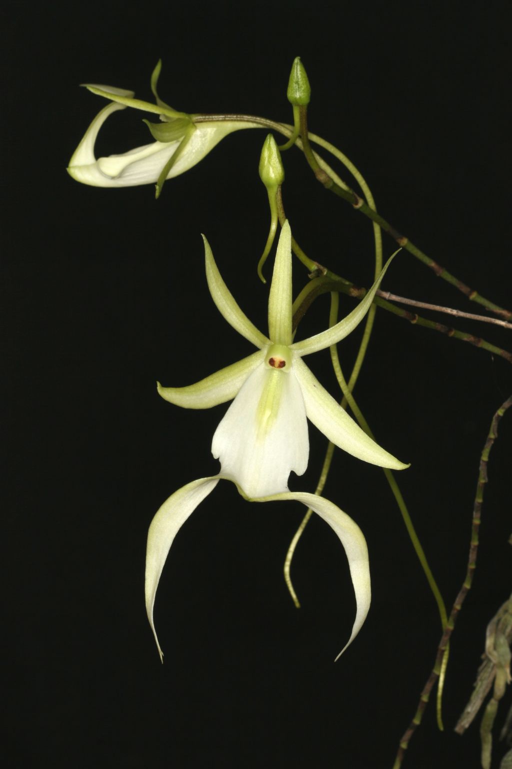 This small sized, south Florida, Bahamas, and Cuba, hot to cool growing species is found in deep swamp forest, thickets and coasta; brushlands. The orchid pictured is in the Fakahatchee strand in the northern Everglades. Good hunting Stephen! They are small leafless epiphytes and their roots have chloroplasts to create the chlorophyl that the plant needs to survive, this function is normally taken care of by the leaves which in this genus are missing and it blooms on a spreading arcuate, 2 1/2 to 9" [6 to 22cm] long inflorescence with scarious bracts and fragrant, 1 to 10 successively opening flowers all arising from the center of the stem that occurs in the early summer in the US and the fall in Cuba. This is a rare and rarely seen plant that is not offered often for the cultivator of orchids.