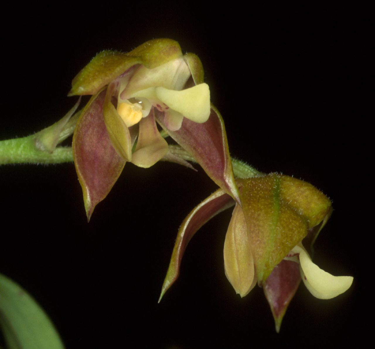 Found in Swaziland, Cape Province, Natal and Transvaal states of South Africa in warmer coastal forests as a miniature sized, warm to cool growing epiphyte with conical, yellowish, ribbed, two-noded pseduobulbs carrying 2 to 3, ligulate, minutely bilobed apically leaves and blooms in the spring and early summer on a terminal, erect, pubescent, 4" [10 cm] long, longer than the leaves, 5 to 16 flowered inflorescence and carrying non-resupinate, densely pubescent outside to glabrous flowers.