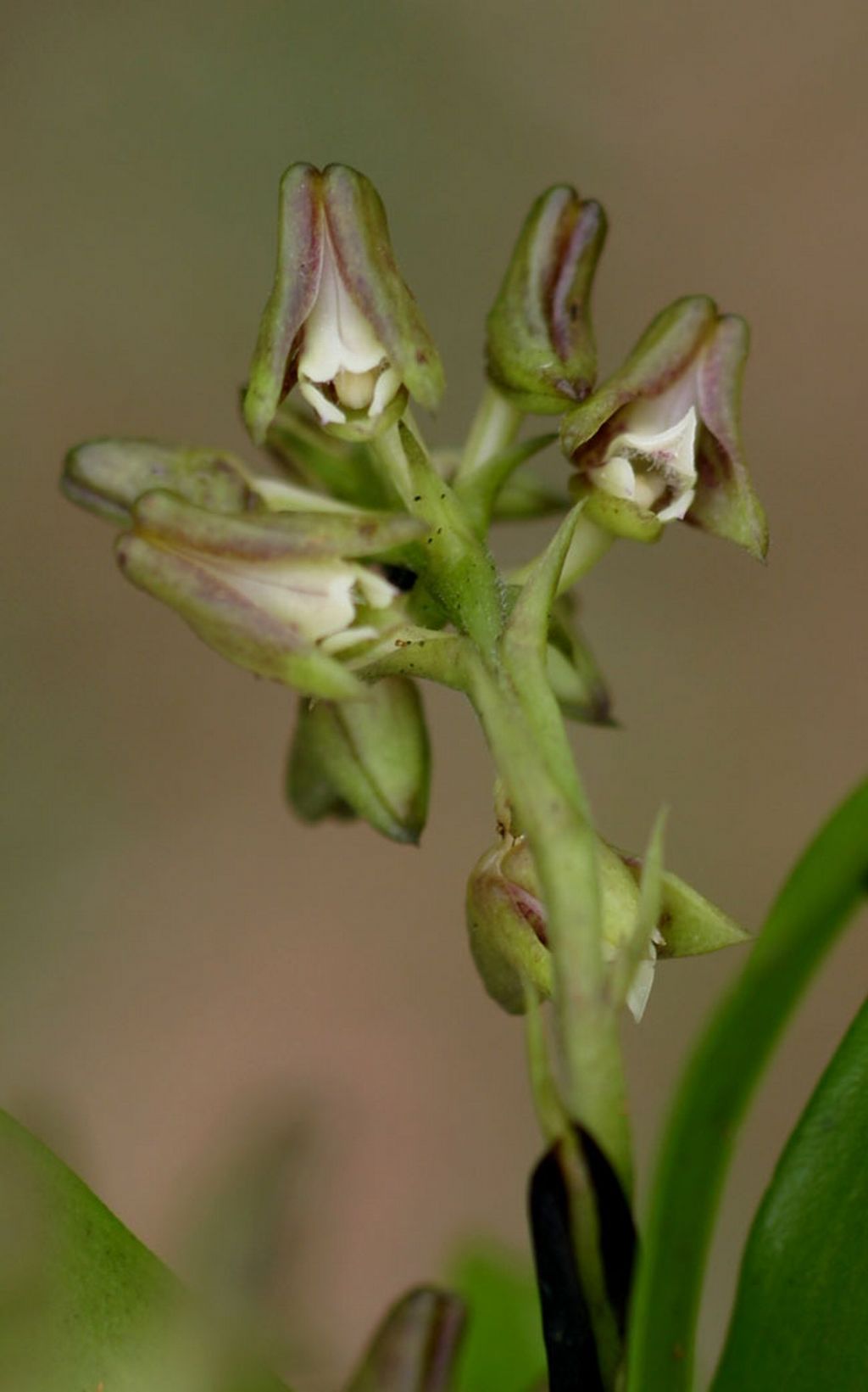 Found in Burundi, Cameroon, Gulf of Guinea Islands, Rwanda, Zaire, Kenya, Tanzania, Uganda, Malawi, Zambia, Zimbabwe, Swaziland and Natal and Transvaal South Africa in lower montane and submontane forests at elevations of 1200 to 2900 meters as a small sized, cool to cold growing epiphyte or occasional lithophyte with elongate, cylindrical pseudobubls enveloped by black, tubular sheaths and carryig 2 to 9, leathery, ligulate, obtuse, dark green often flushed with purple leaves that blooms in the spring and summer on a terminal, 1.2 to 5.2" [3 to 13 cm] long, racemose to few branched, 5 to 12 flowered inflorescence and carrying non-resupinate flowers.