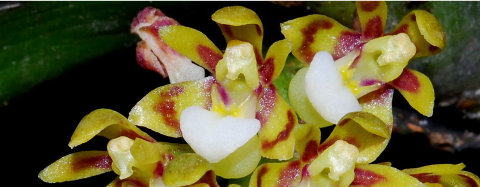 Found in Assam, the eastern Himalayas, Bangladesh, Yunnan province of China and Taiwan in forests on tree trunks at elevations around 200 to 1000 meters as a small to medium sized, hot to warm growing epiphyte with a short stem carrying 3 to 7, linear-lorate, leathery, conduplicate towards the base, unequally bilobed apically leaves that blooms in the late winter and spring on a lateral, condensed, racemose, globose in outline, 1/2" to 1.6" [1.3 to 4 cm] long, densely many flowered inflorescence with broadly triangular floral bracts and carrying fleshy flowers