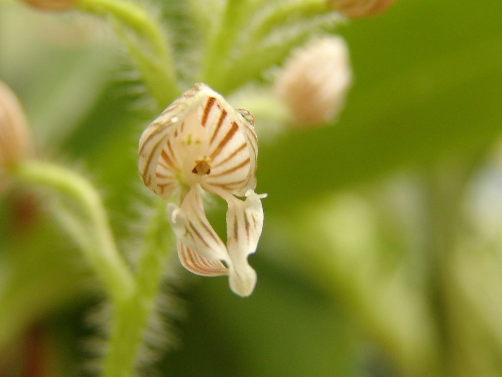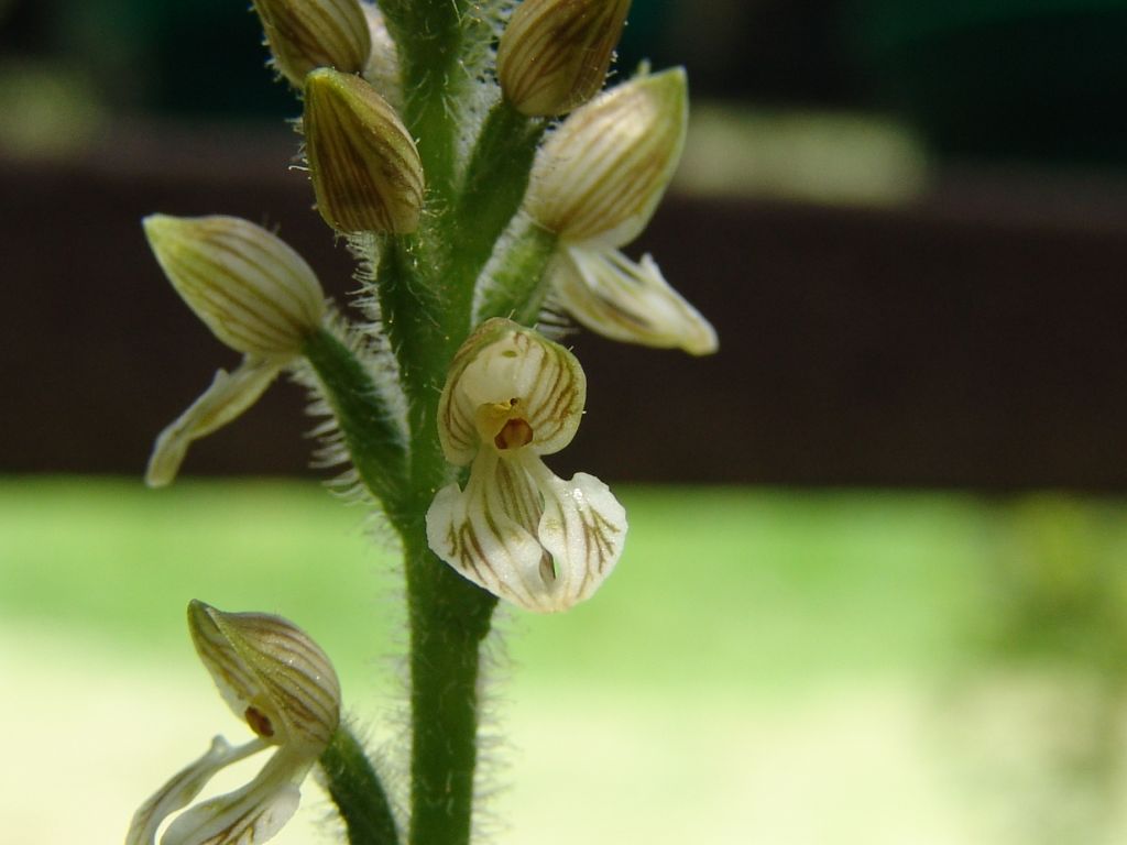 Found in Colombia, Ecuador, Peru and Bolivia in wet montane forests as a medium sized, cool to cold growing terrestrial or occasional pubescent epiphyte with 2 to 3, basal, pubescent, elliptic, acute, gradually narrowing below into the conduplicate, petiollate base leaves that blooms in the summer on an erect, terminal, terete, pulverulent, to 10" [to 25 cm] long, successively many flowered inflorescence carrying non-resupinate flowers