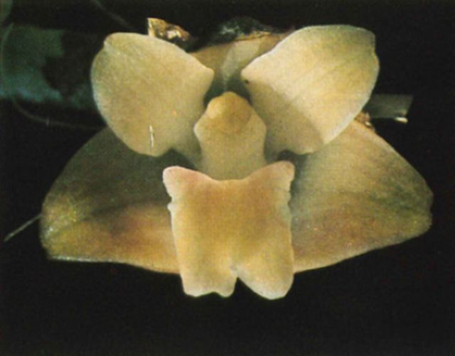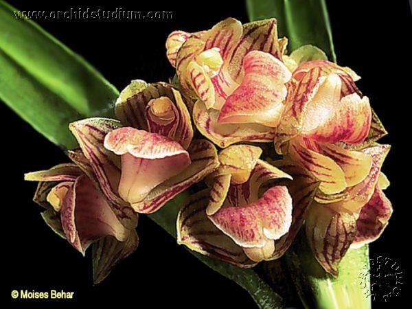 Found from Mexico, Guatemala, and El Salvador in wet montane forest, pine/oak/liquidambar foretst and in evergreen cloud forests as an epiphytic, sometimes rupicolous, small sized, cool to cold growing orchid that occurs at elevations of 1200 to 2300 meters with robust, thick stems enveloped completely by several, tubular sheaths that become leaf-bearing towards the apex and carrying a few, clear green, disitchous, linear, obliquely retuse and bilobed apically, conduplicate below into the base leaves and blooms in the spring on a terminal, short, racemose, glomerate, held close to the leaf inflorescence that has a few flowers that open in succession.