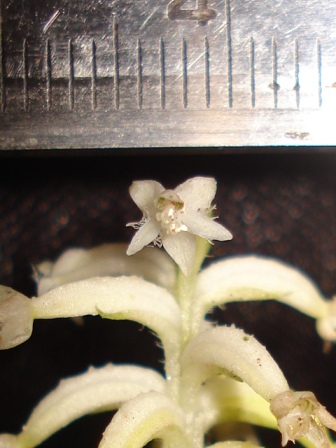 Found in Chiapas state of Mexico and Guatemala at elevations up to 1600 meters as a small sized, cool growing terrestrial with several basal leaves , elliptic, obtuse to subacute, basally rounded into the petiolate base leaves that blooms on an erect, green becoming white with age, pubescent few flowered inflorescence with ovate, acuminate floral bracts.