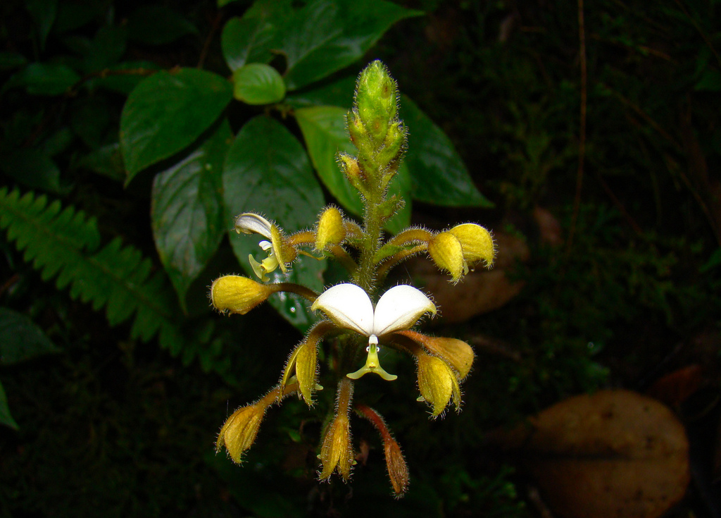 Found in Mexico, Guatemala, Nicaragua, Costa Rica and Panama at elevations of 1170 to 1650 meters in cloud forests as a medium sized, warm to cool growing terrestria lwith a short stem carrying a spiral rosette of 6 to 8, thin, convolute, ovate-elliptic, acuminate, gradually narrowing below into the elongate, petiolate base leaves that blooms in the summer on a terminal, pubescent, spicate, elongating to a 6" [15 cm] long, laxly, successively to 25 flowered inflorescence and carrying non-resupinate flowers