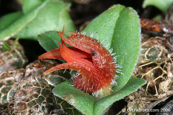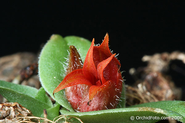 Found in Assam, Myanmar, Thailand and Malaysia in deep mossy forests on limestone at elevations around 1000 to 1500 meters as a mini-miniature sized, cool growing epiphyte or lithophyte with flattened globose pseudobulbs carring 2, broadly ovate to orbicular, obtuse leaves that blooms in the summer on sessile, 1 to 2 flowered inflorescence.