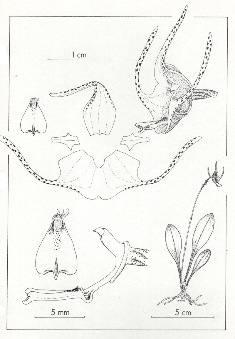 References W3 Tropicos, Kew Monocot list , IPNI ; *Icones Pleurothallidinarum Vol VI Systematics of Pleurothallis subgen Ancipita, Scopula and Trisetella Luer 1989 drawing fide; Native Ecuadorina Orchids Vol 4 Dodson 2003 drawing; Orchids of Bolivia Vol 2 Laelinae Vasquez and Ibisch 2004; Orchids Masdevallia with its segregates including Dracula Zelenko 2014 photo fide; Pleurothallids Neotropical Jewels Vol 1 Karremans & Viera 2020 photo fide