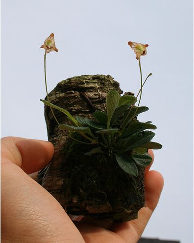 Found in Ecuador in wet montane cloud forests around elevations of 1700 meters as a mini-miniature sized, cool growing epiphyte in cloud forests with blackish, erect, slender ramicauls enveloped basally by 2 to 3 tubular sheaths carrying a single, apical, erect, coriaceous, suverrucose, prominently purple-reticulate, elliptical, obtuse to subacute leaf with the base cuneate into the slender petiole that blooms in the summer on a slender, suberect to horizontal, congested, successively few flowered, racemose, lightly scabrous inflorescence with non-resupinate flowers