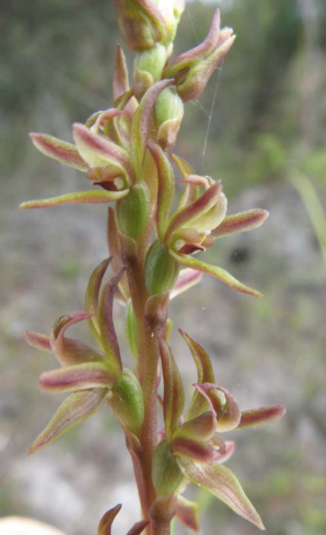 Prasophyllum castaneum D.L.Jones 1998 Photo by © Greg Jordan and University of Tasmania Photo Website