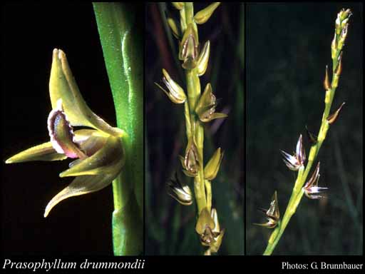 Prasophyllum drummondii Rchb.f. 1871 Photography by G Brunnbauer . Image used with the permission of the Western Australian Herbarium, Department of Environment and Conservation (http://florabase.dec.wa.gov.au/help/copyright). Accessed on Wednesday, 29 August 2012 © and The Flora Base Orchid Photo Website