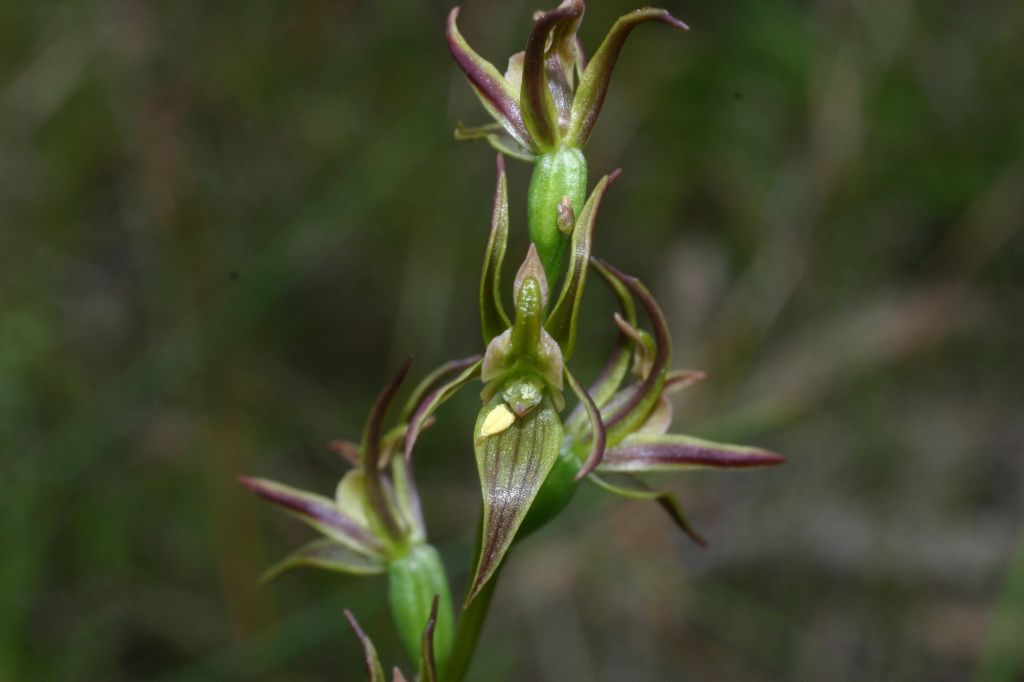 Found in Victoria Australia in seasonally inundated depressions [gilgai] in disturbed woodlands at elevations of about 150 meters as a small to medium sized, cold growing terrestrial with a single leaf that blooms in the spring on an ereect, 12 to 18" [30 to 45 cm,] long overall, rachis 2 to 4.8" [5 to 12 cm] long, 10 to 20 flowered inflorescence carrying fragrant flowers.