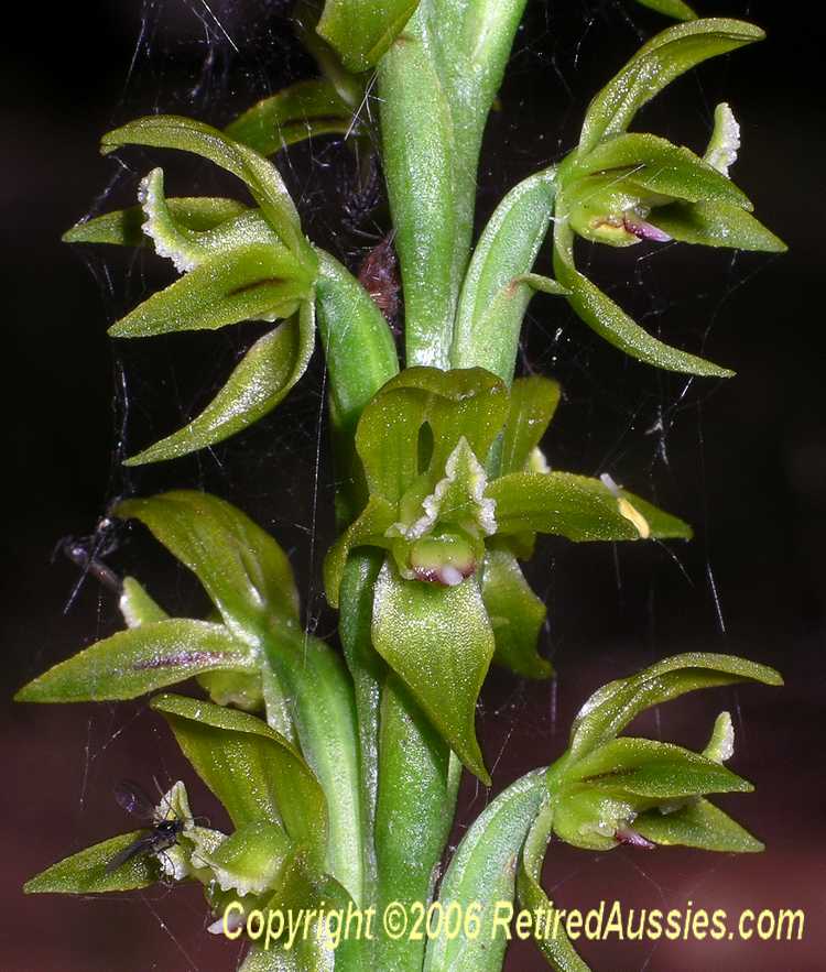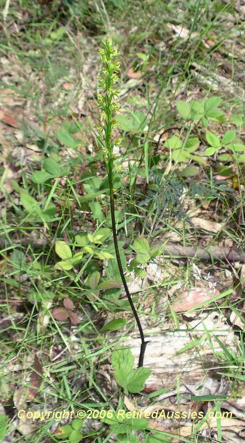 Found in Queensland, New South Wales and Victoria Australia in mountain areas of Victoria at elevations of 30 to 1100 meters , in tall wet forests, as a large sized, cool to cold growing terrestrial with an ovoid tuber giving rise to an erect stem enveloped by a single attached below on the stem to just below the inflorescence and then stiffly and shortly free, purplish leaf that blooms in the late spring and summer in Australia on a 3' [90 cm] long, 8 to 50 flowered inflorescence with successively opening, moderately crowded flowers.