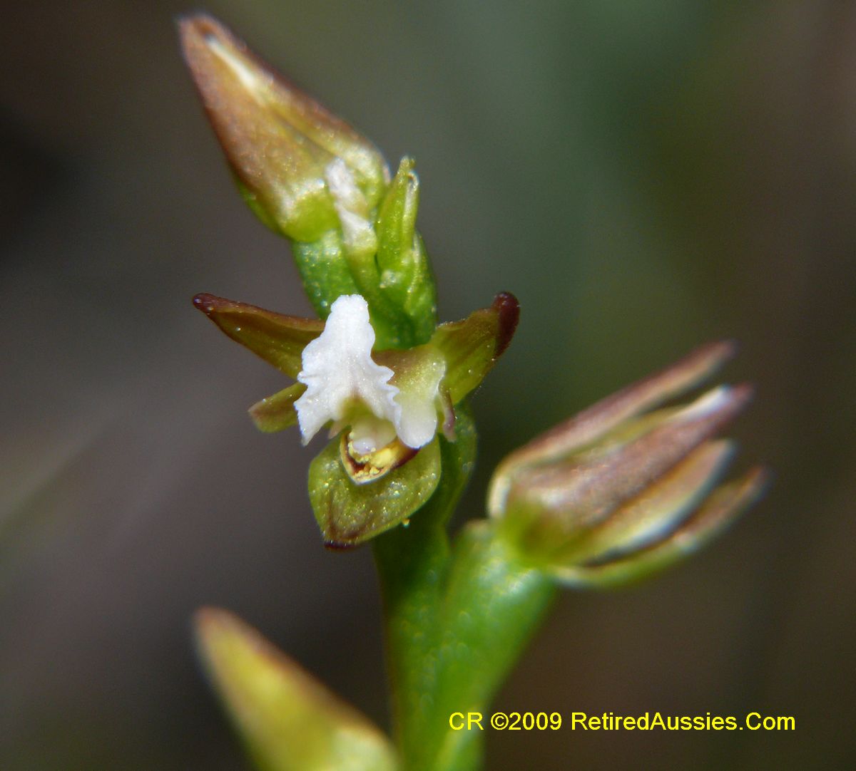 Prasophyllum pulchellum D.L.Jones 1998 Photo by © Misha and Colin Rowan and their Retired Aussies Orchid Photo Website