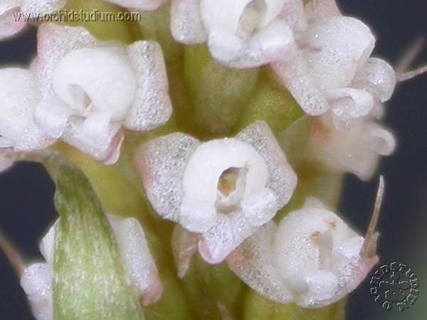 Found in Rio de Janiero, Minas Gerais, Sao Paulo and Parana states of Brazil as a miniature to small sized, cool to cold growing epiphtye with 2 to 4, basal, brilliant dark green, erect, thinly membraneous, spathulate, obtuse, gradually narrowing below into the pseudo-petiolate base leaves that blooms in the fall on an erect, naked, 6" [15 cm] long, laxly many flowered inflorescence.