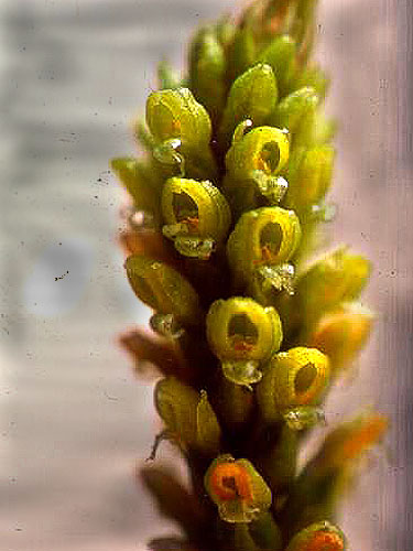Found in Rio de Janiero, Minas Gerais and Sao Paulo states of Brazil at elevations around 2200 meters as a small sized, cool to cold growing terrestrial with a short stem enveloped by 1 to 2 leafless, basal sheaths carrying above, a single apical, oblong, acute, narrowing below in to the elongate, petiolate base leaf that blooms in the later summer and earlier fall on a terminal, erect, carrying 3, tubular, acute bracts, 12" [30 cm] long, densely many flowered inflorescence