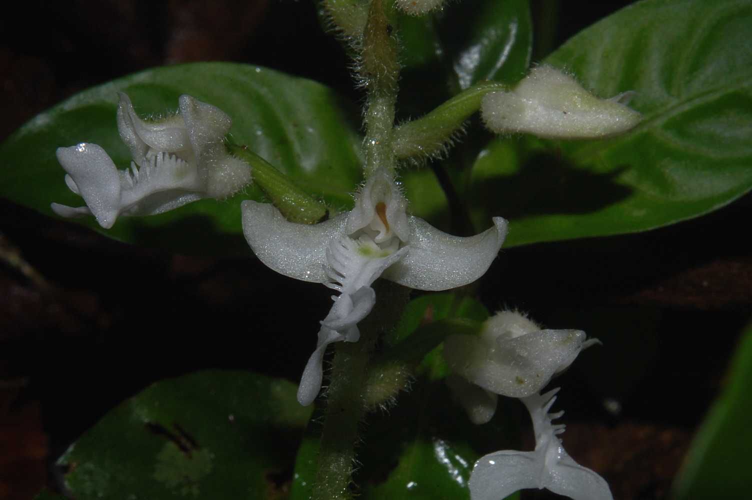 Found in Java and Sumatra in primary and secondary montane forests at elevations of 1100 to 1500 meters as a miniature to small sized, warm growing terrestrial with an erect, stem carrying 5 to 8, ovate, acute, shiny light green leaves spread evenly on the stem that blooms innthe spring on an erect, shortly white pubescent, 2" [5 cm] long, 2 to 9 flowered, racemose inflorescence with oblong, acute, pale brownish green, pubescent on the outside floral bracts.