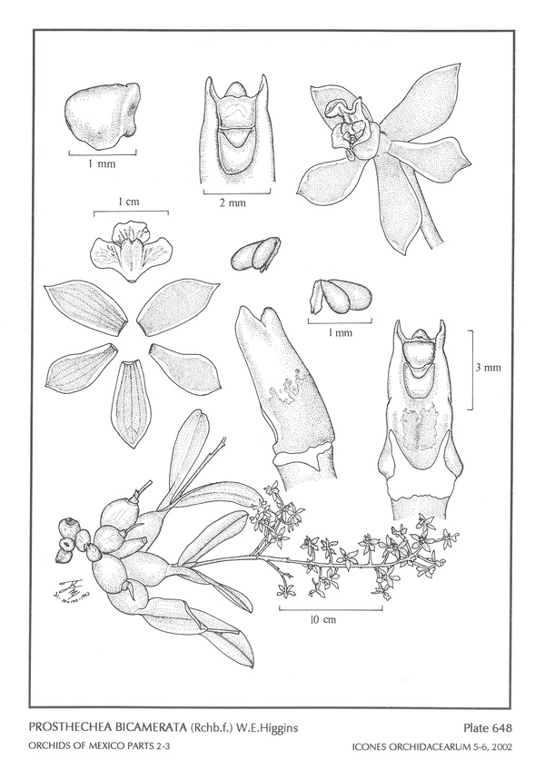 Prosthechea bicamerata [Rchb.f] Higgins 1997 Drawing by Hagsater and The Swiss Orchid Foundation at the Jany Renz Herbaria Website